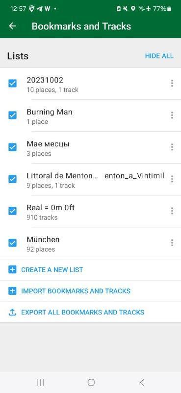 Saved Places.jsonbookmarks from Google Takeout (Sergiy Kozyr) .jsonfiles can also be imported now as.geojsonfiles. (Alexander Borsuk)- When you move a track to a list, that list becomes the default for new bookmarks and tracks. (Kiryl Kaveryn)