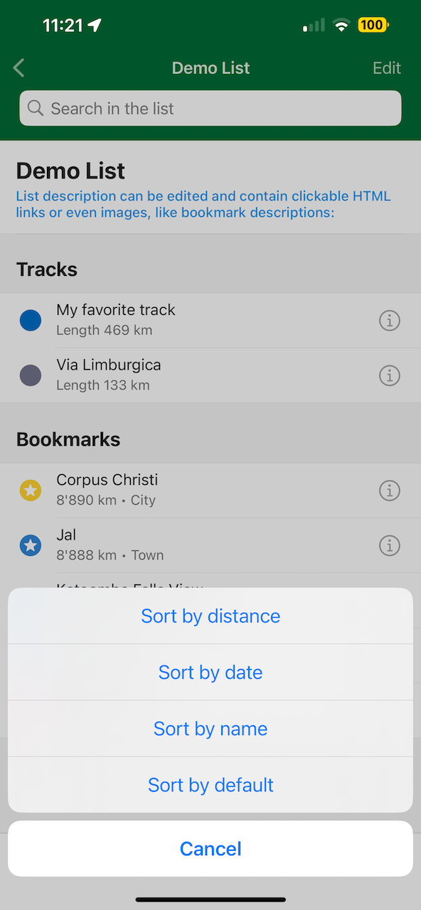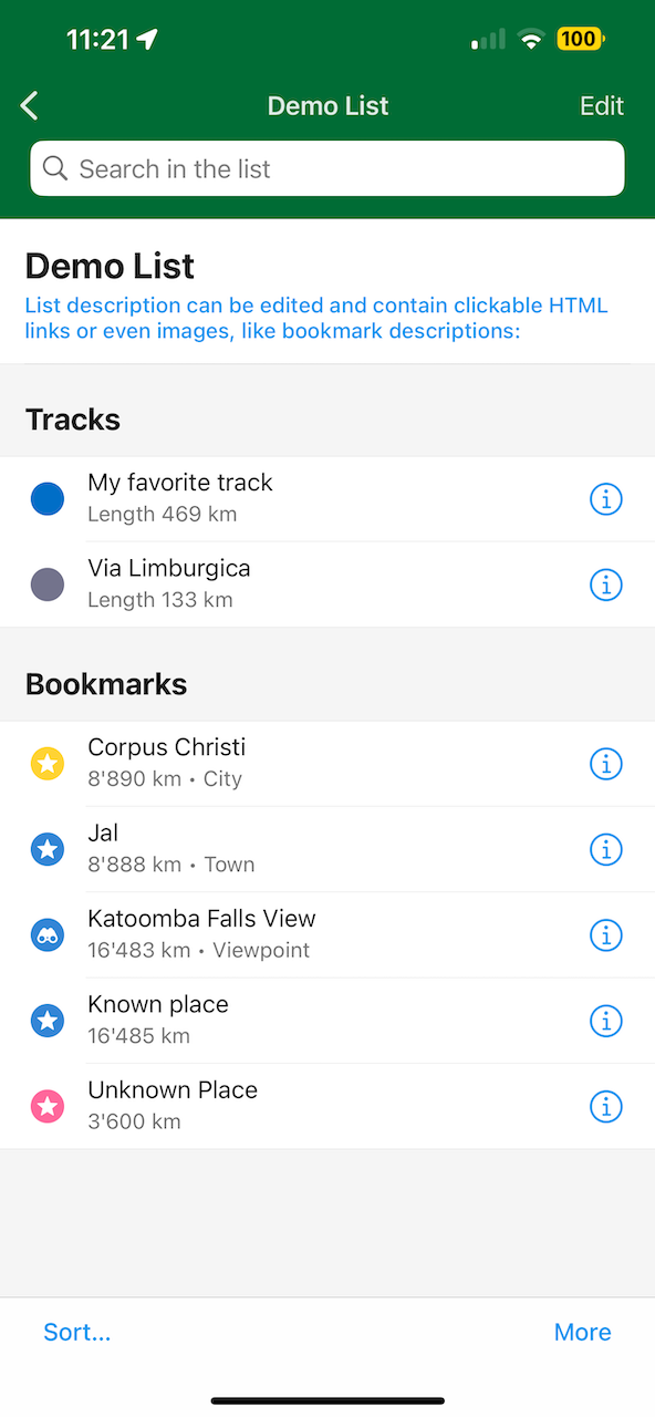 - Tap the list name on the Place Information Page to select a new list for a bookmark or track, and use the new search to quickly find the list you want. (Kiryl Kaveryn)